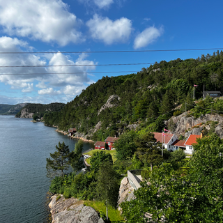 Erstmal raus aus dem verkehrsreichen Kristiansand. Schon nach ein paar Kilometer und ein bis zwei Abbiegungen wurde es ruhiger, schöner und gleich sehr sehr hügelig.So konnten wir innerhalb von Minuten das ganze Gängerepetoire unserer Fahrräder nutzen und mussten teilweise im Schritttempo die Berge hochfahren. 🚴♂️