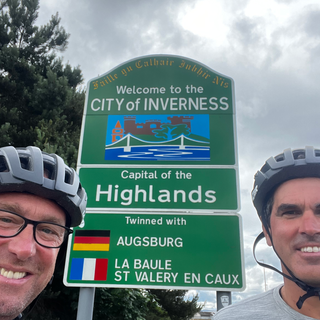 Um 10 Uhr ging es los, nach einer Stunde gleich der erster Stopp, wir wurden eingeladen von einer Rennradgruppe die eine organisierte Tour quer durch Great Britain, von südwestlichsten Punkt Land’s End zum Nördlichsten Punkt, John o’Groath machen.